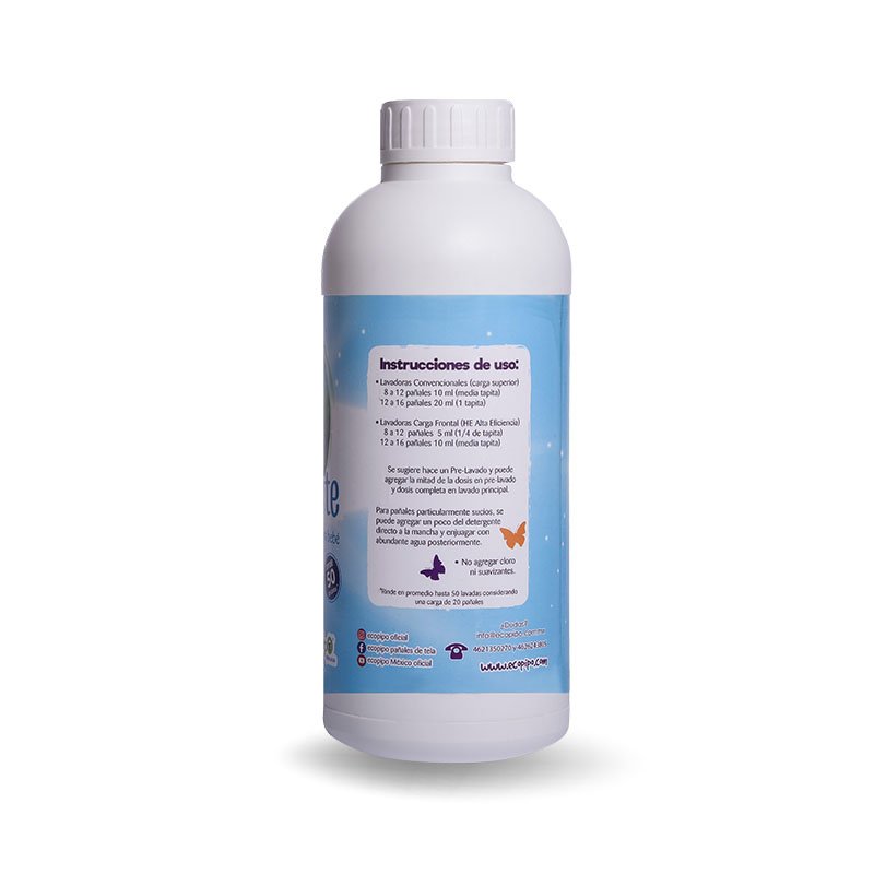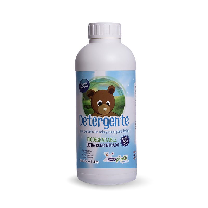 El detergente para pañales Ecopipo, está especialmente fabricado para el lavado correcto de los pañales ecológicos, libre de fosfatos, hipoalergénico, sin aroma, biodegradable, libre de químicos tóxicos, además protege la piel de tú bebé y asegura el buen funcionamiento y cuidado de los pañales ecológicos